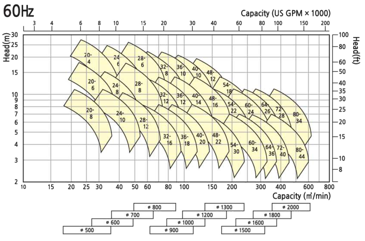 | Diameter | Type | Output | Poles (60Hz) | Total Pump Head | Discharge Volume | Poles (50Hz) | 400 | 400-HSI-HISMPMF30 | 30 | 8 | 6 | 16 | 6 |